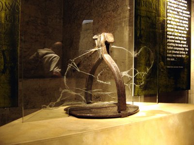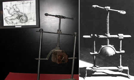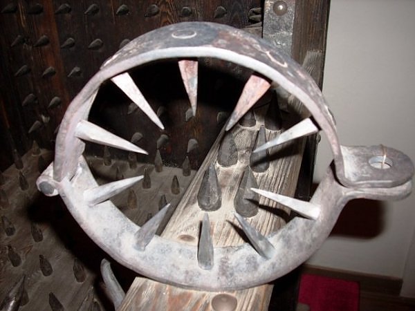 This is a very popular torture device during the period of Inquisition. As the name suggests, these device causes the knees of the victims to split. It is made out of a pair spikes and wooden blocks which are pressed together by a screw until it breaks the knee of the victim.