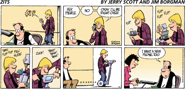 Written by Jerry Scott and illustrated by Jim Borgman, Zits is about the life of Jeremy Duncan. A 16-year old junior at high school, Jeremy tries to balance his life while he struggles through school projects, hangs out with his friends and practices to become a ‘Rock God’. The strip features a variety of supporting and core characters.