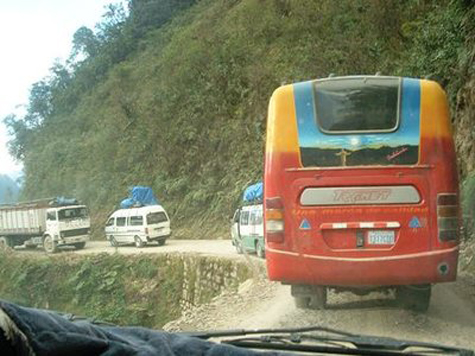 North Yungas road is one of the most dangerous roads in the world for motorists. It lies in the Bolivian Andes, 70 km from La Paz to Coroico, and plunges down almost 3,600 meters. It has very narrow hairpin bends and 800-meter abyss near-misses.